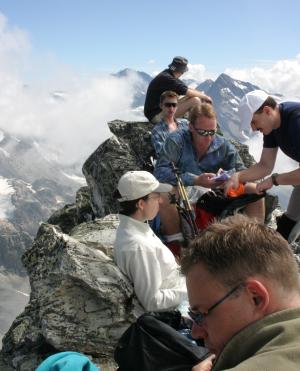 Gemütliche Rast auf dem Chli Windgällen - wenn auch manchen etwas mulmig ob des Abstiegs war |