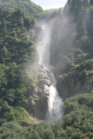 Gegen 14 Uhr hieß es dann wieder Rucksack aufnehmen zum Weitergehen. Schon kurz nach dem SAC-Hotel verließen wir die Fahrstrasse und es ging wieder auf schmalen Wanderweg talaufwärts. Entlang des Weges sah man reißende Wasserfälle ins Tal stürzen und eine reichliche Fauna und Flora sorgte für viel Abwechslung. Nach der Überquerung des tosenden Chärstelenbaches – hier war es richtig angenehm kühl – stieg der Weg steil an und es ging ins Brunnital.