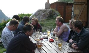 Mangels einer Gitarre auf der Hütte – die vorhandene diatonische Ziehorgel konnte von uns keiner spielen – sang man dann halt ohne Begleitinstrument. Die am Abend auf der Hütte eingetroffene Schulklasse unterstütze uns hierbei ebenfalls. Pünktlich um 22 Uhr zur Hüttenruhe und nach einem schönen Sonnenuntergang begab man sich zum „Matratzenhorchdienst“. Doch bis es zur Nachtruhe kam mussten noch eine Kleinigkeit geklärt werden – soll die Tür ins Freie offen bleiben oder nicht? Diejenigen die ganz hinten lagen war für ja, die vorne für nein. Da keine Einigung in Sicht war wurde von Matthäus die Tür mithilfe einer Schnur in einer teilweise geöffneten Position fixiert und diese Lösung wurde im Großen und Ganzen akzeptiert.