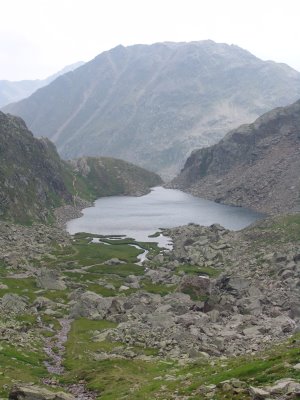 An seinem Ufer machten wir eine Pause und ließen unsere Gedanken schweifen. Von hier aus ging es dann auf gut markierten Wegen abwärts zum Fahrweg zur Maighelshütte den wir vom Vortag ja bereits kannten. Nach einem kurzen Gegenanstieg erreichen wir um kurz vor 13 Uhr wieder die Maighelshütte.