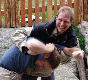 Dass wir auf dieser Tour nicht ausgelastet wurden zeigte sich auch kurz darauf beim Herumalbern zwischen Rainer und Johannes, das fließend in einen nicht ernst gemeinten "Ringkampf" überging. Der steinige Untergrund war aber nicht das ideale Terrain hierfür, so dass diese Freizeitbeschäftigung auch bald beendet war.